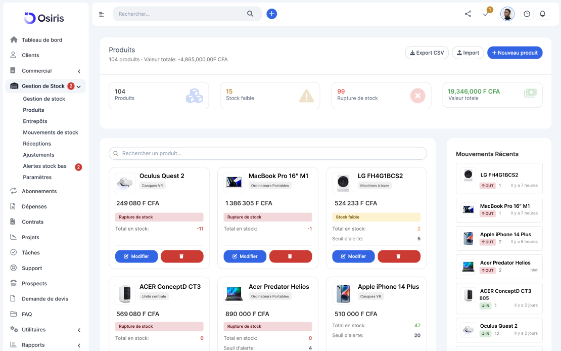 Osiris regroupe tous les outils dont votre entreprise a besoin dans une plateforme simple, moderne et personnalisable.